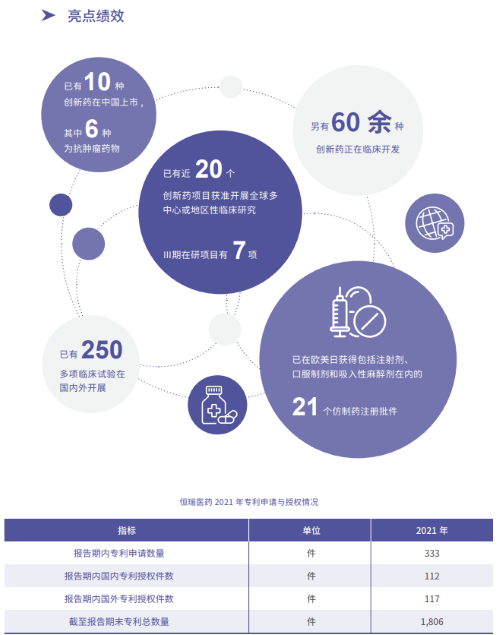 报告指出,在科技创新战略引领下,AG百家乐试玩医药2021年累计研发投入62.03亿元,比上年增长24.34%,研发投入占销售收入比重达到23.95%,再创历史新高。以此为支撑,2021年公司有3款创新药获批上市,已上市创新药总量增至10款,其中6款为抗肿瘤药物。同时还有60余种创新药正在临床开发,250多项临床试验在国内外开展,其中近20个创新药项目获准开展全球多中心或地区性临床研究。在创新药研发上,AG百家乐试玩医药已基本形成了上市一批、临床一批、开发一批的良性循环。