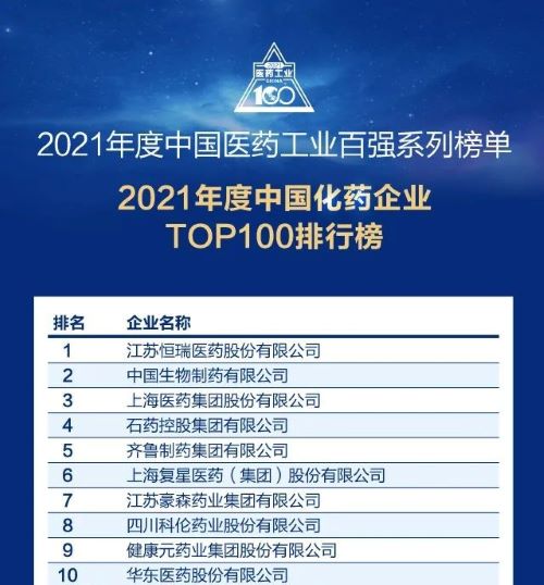 此前,AG百家乐试玩医药已经连续多年入选“中国化药企业TOP100排行榜”,自2018年起名列首位,今年再度蝉联榜首。