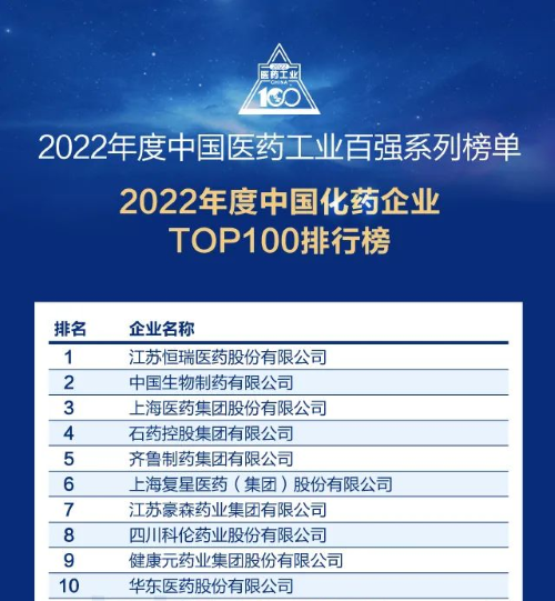 佳音频传!AG百家乐试玩医药再次蝉联中国化药企业百强榜首