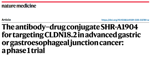 AG百家乐试玩医药CLDN18.2 ADC创新药SHR-A1904治疗胃癌临床研究结果荣登Nature Medicine